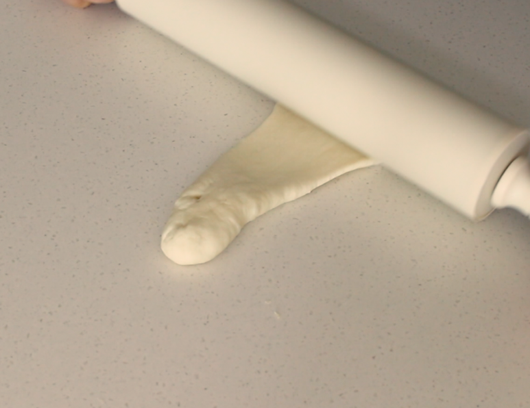 15분 뒤에 반죽을 길게 만들어 4등분 해줄게요.