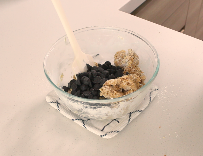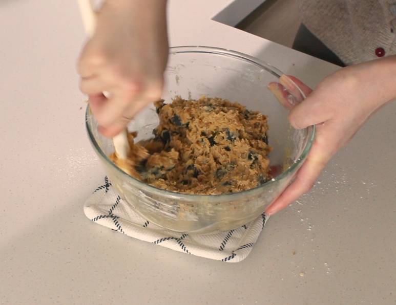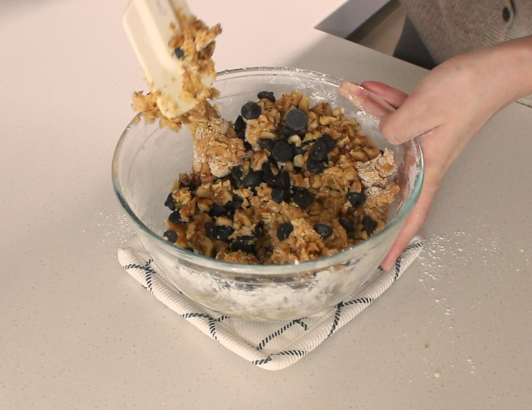 전처리 해둔 호두와 다크 커버춰를 넣고 섞어주세요.