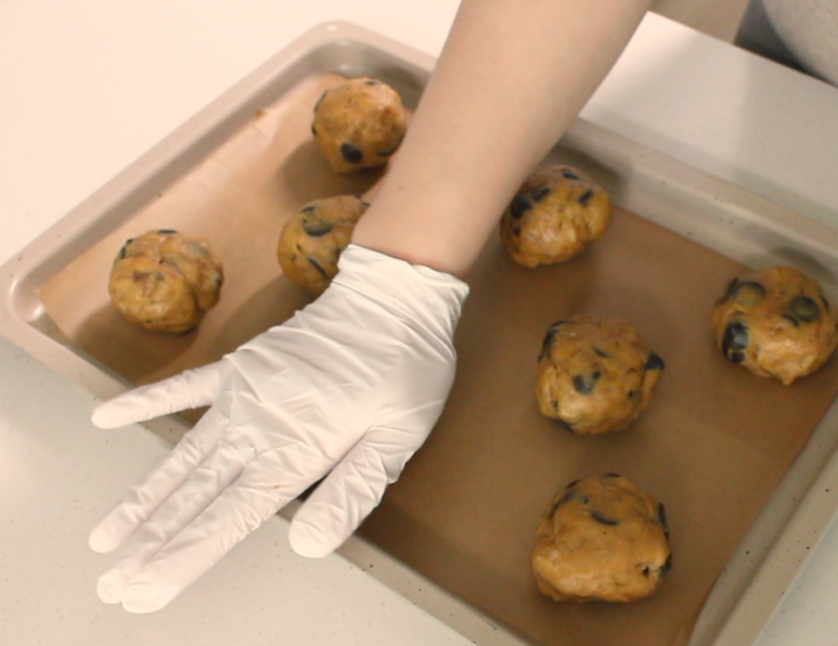 8등분 한 반죽을 동그랗게 만들어 오븐팬에 팬닝하고