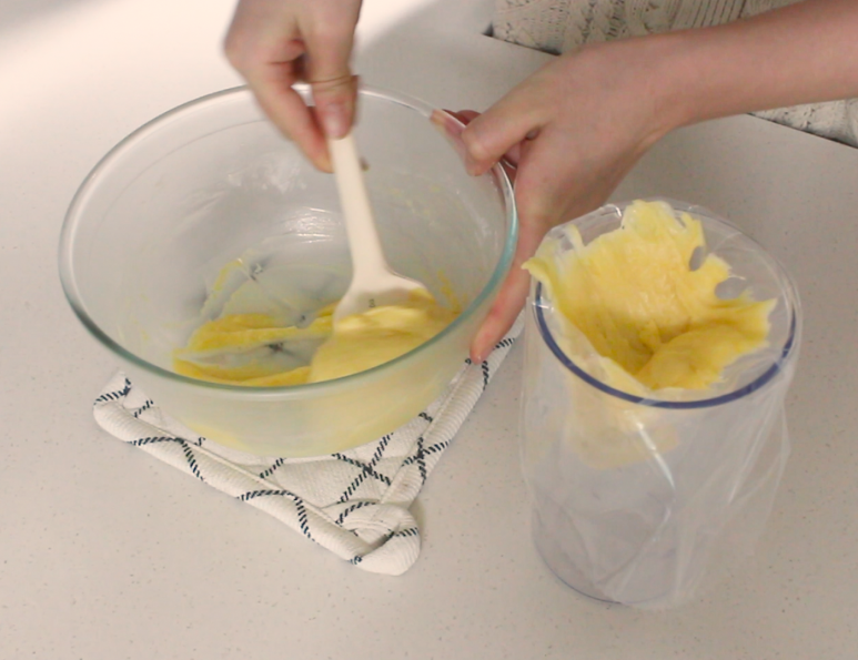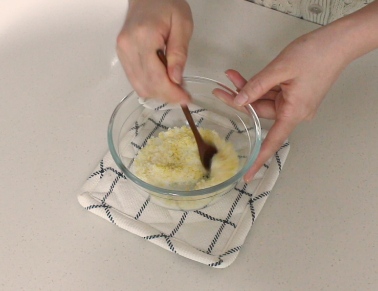 버터는 전자레인지에 10초씩 끊어 돌려 45~60도 사이로 맞춰주세요.
