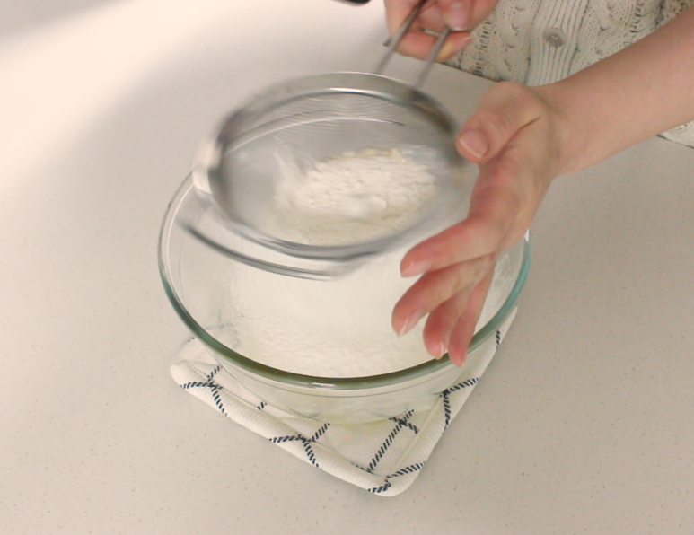 박력분, 아몬드가루, 베이킹파우더를 체쳐서 넣고