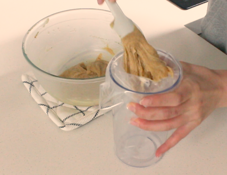 10. 반죽을 짤주머니에 담아주세요.