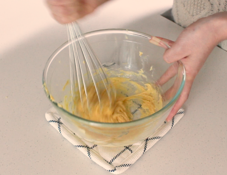 버터가 완전히 섞이면 나머지 버터를 넣고 섞어주세요.