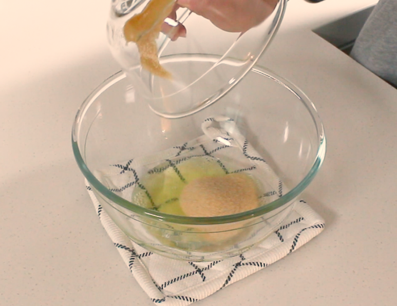 흰자에 설탕과 꿀을 넣고 섞어줄게요.