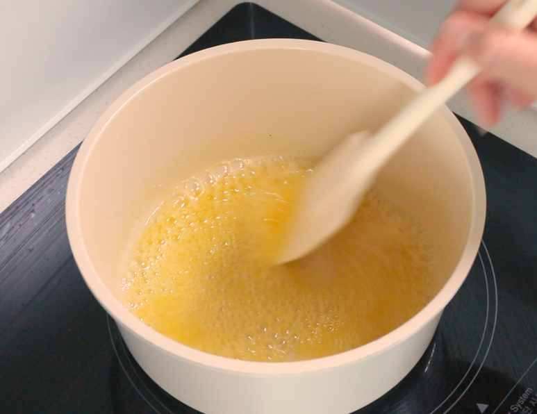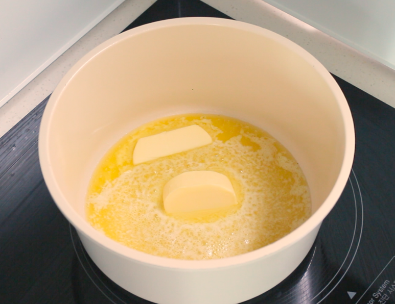 버터의 색이 갈색으로 변하고 견과류 볶는듯한 강한 향이 나면 불을 끄고