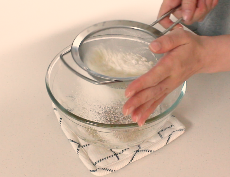 4. 가루류를 체셔서 넣고 섞어주세요.