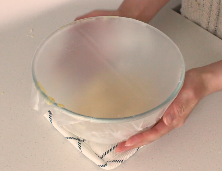 반죽에 랩을 씌워 냉장실에서 1시간 이상 휴지해주세요.