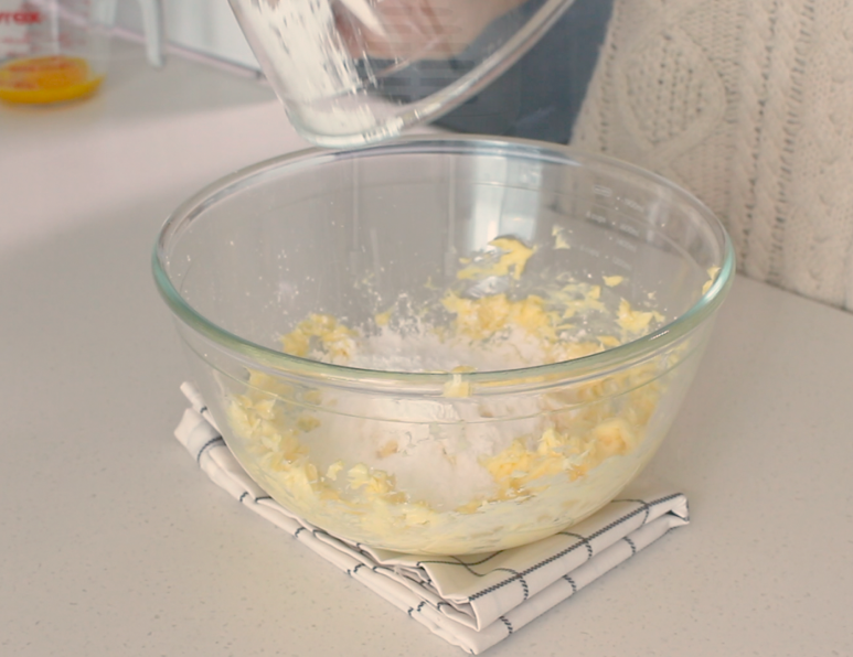 슈가파우더와 소금을 넣고 버터와 섞어줄게요.