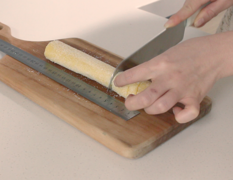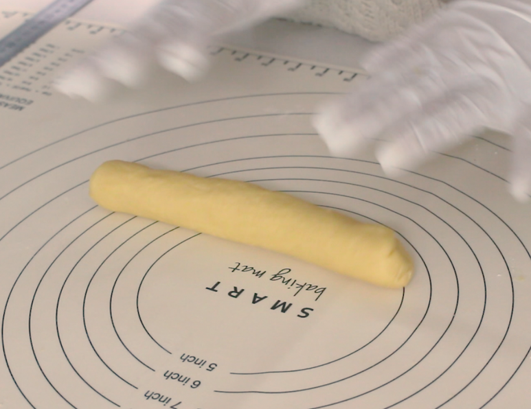 30분후 냉장고에서 꺼낸 반죽을 원통형 모양으로 만들어줄게요.