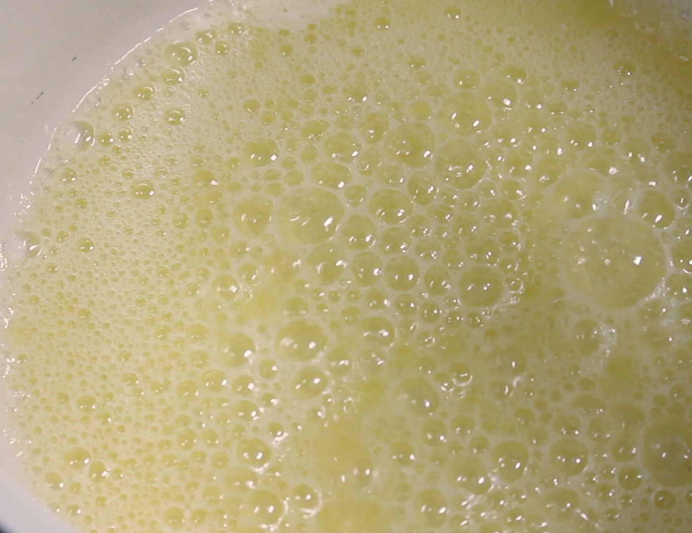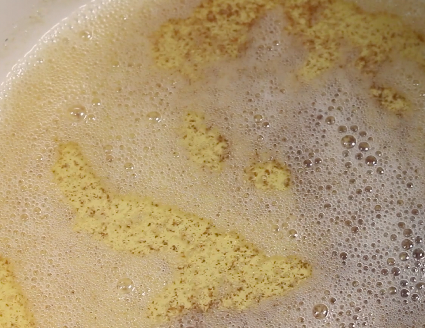 버터의 색이 갈색으로 변하고 견과류 볶는듯한 강한 향이 나면 완성이에요.