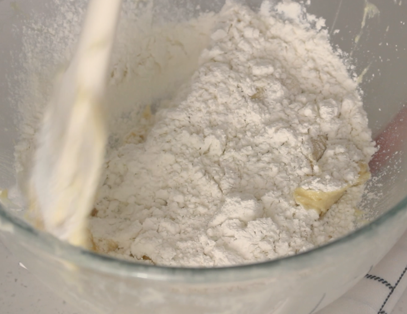 박력분을 체쳐서 넣고 주걱으로 자르듯이 섞어주세요.