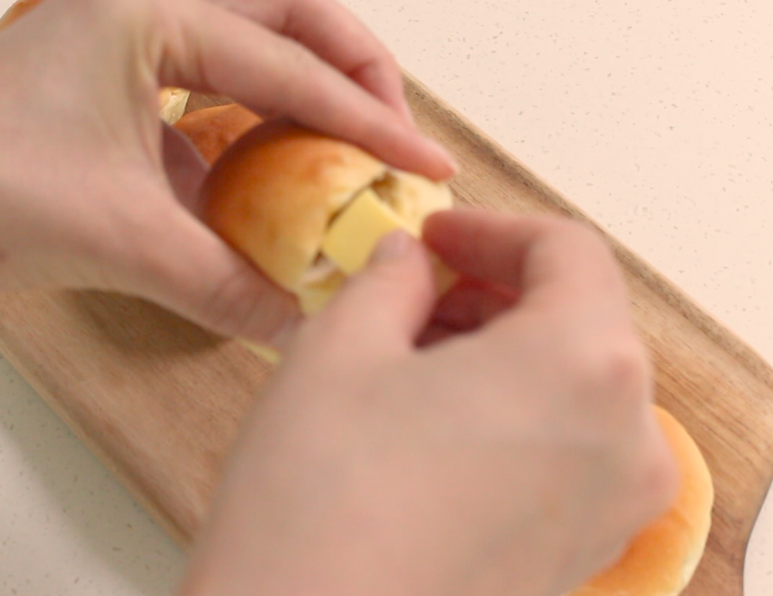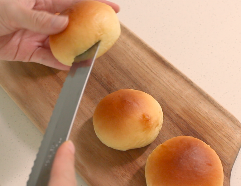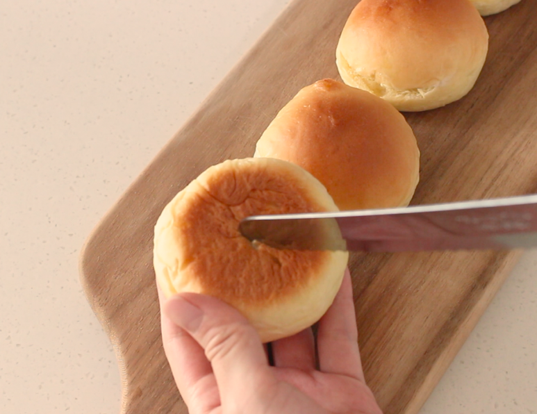 빵 바닥면도 바삭해질 수 있도록 십자 모양으로 칼집을 내줄게요.