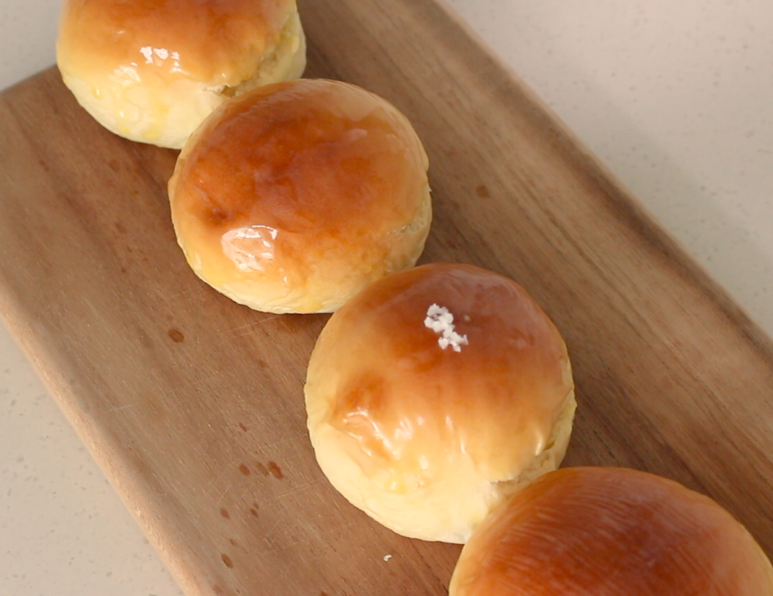오늘은 저번에 만들었던 모닝빵으로 유행하는 소금빵을 만들어 보았어요.