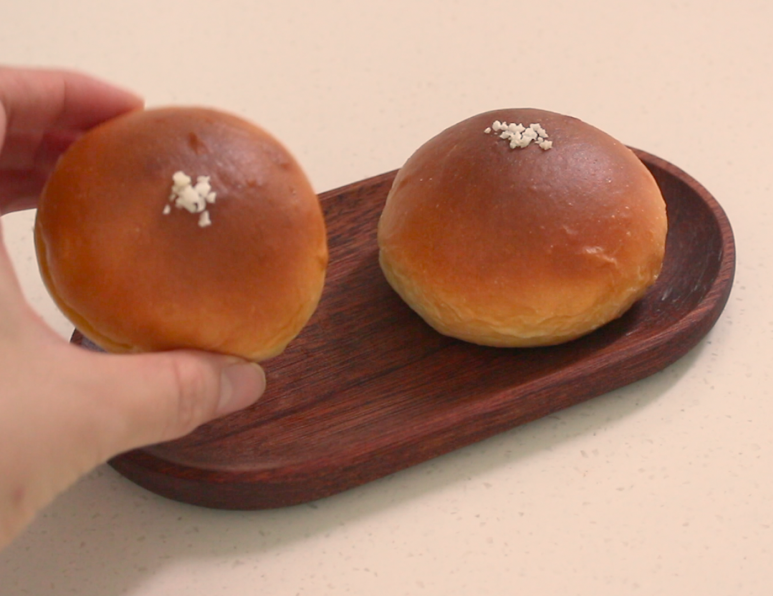 이제 빵 위에 굵은 소금을 올려 소금빵처럼 데코해줄게요.